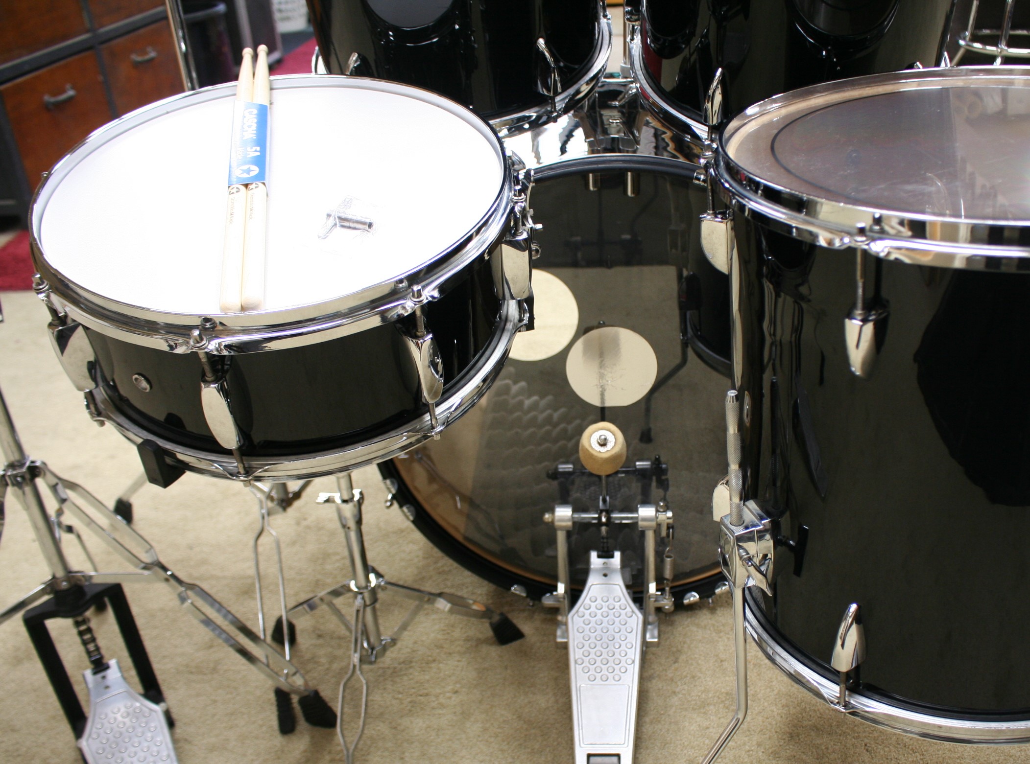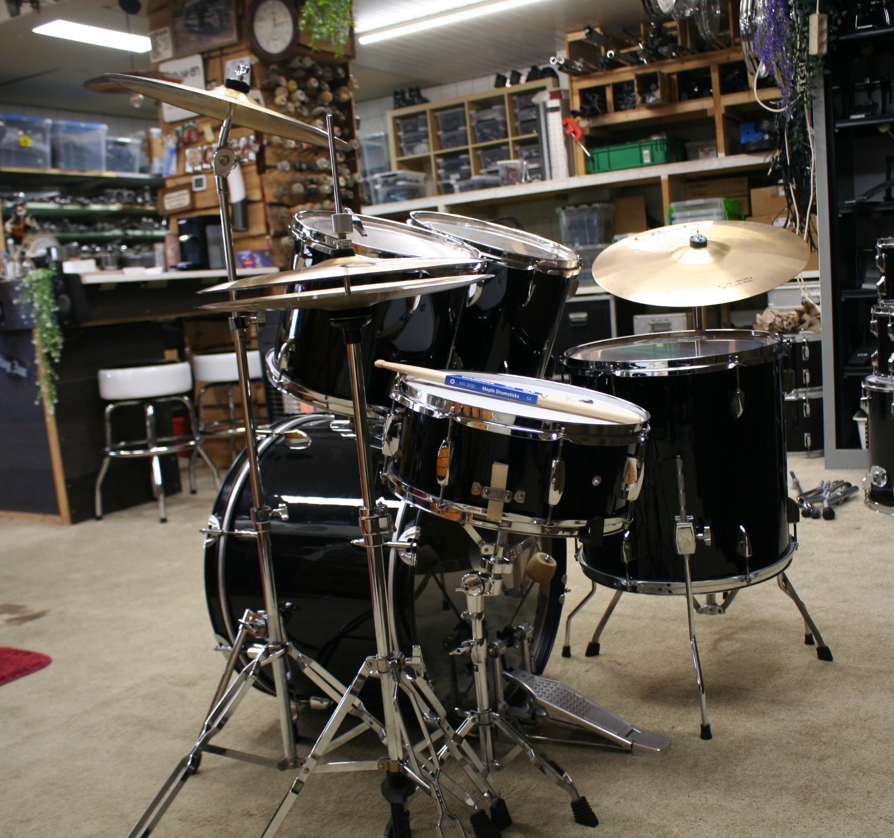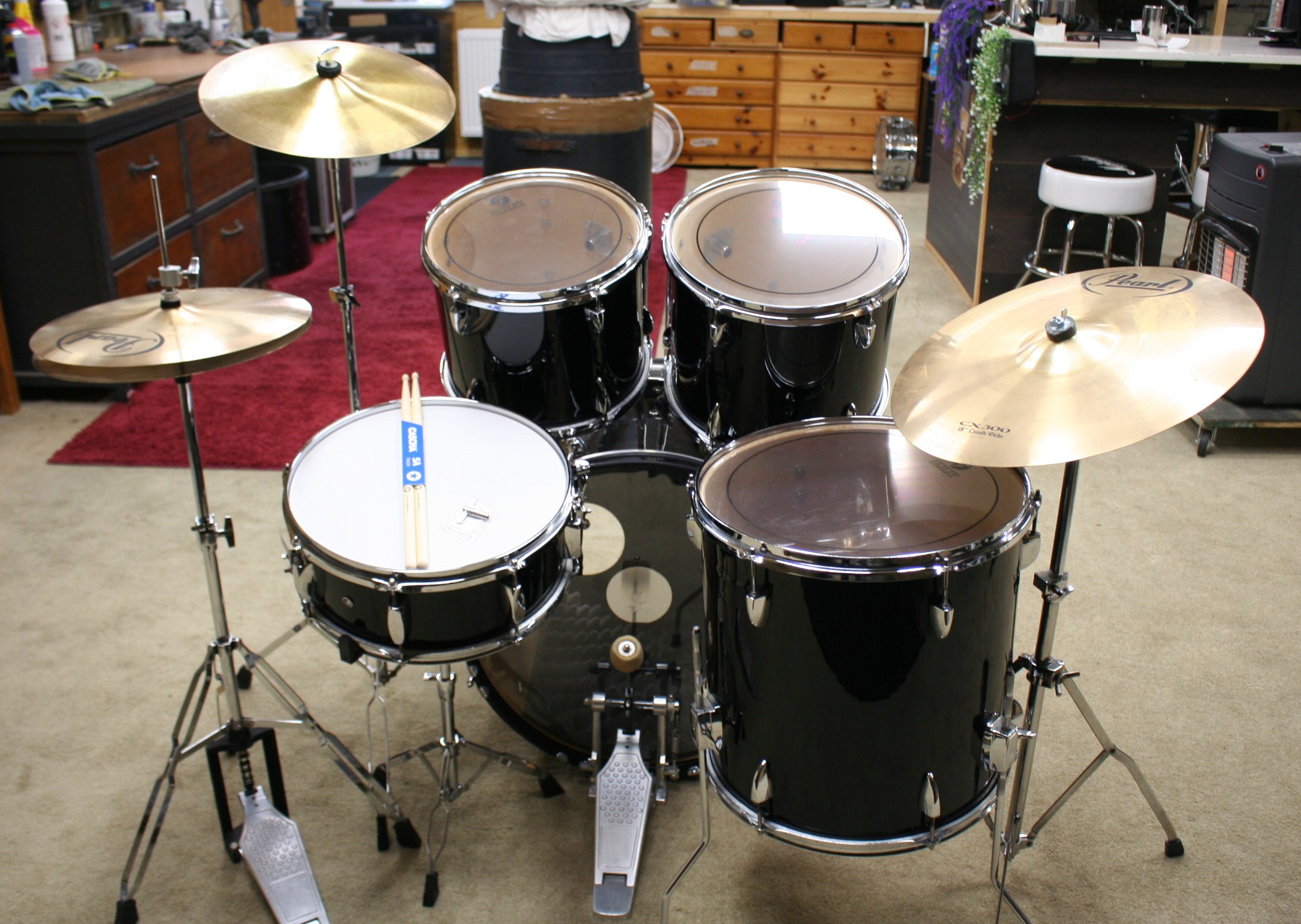 incl. beginners bekkenset bestaande uit 14 inch hihat, 14 inch crash en 18 inch crash/ride,