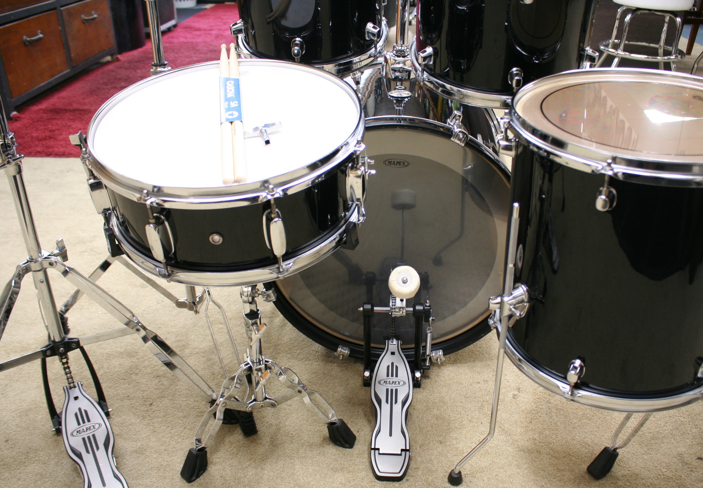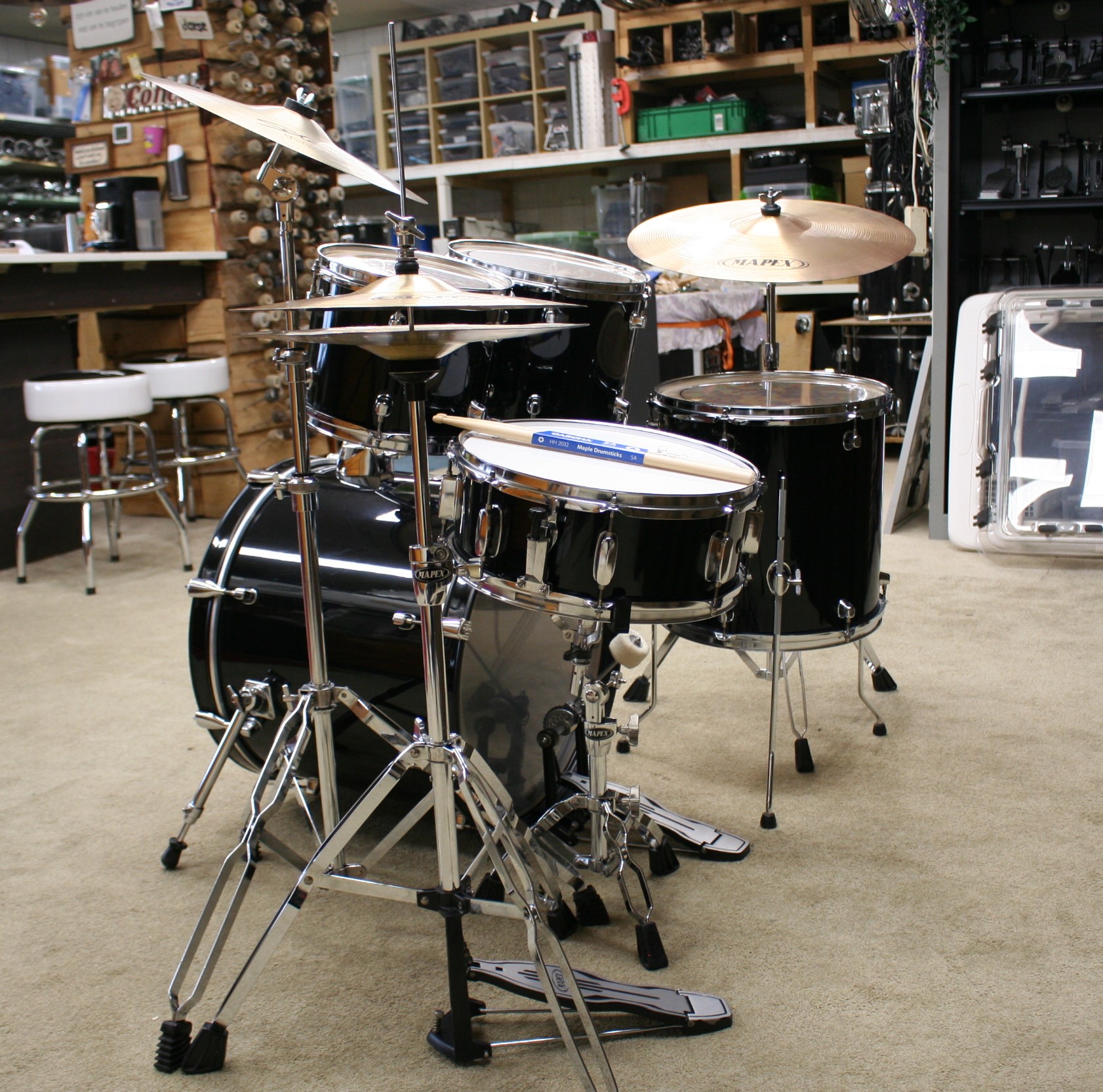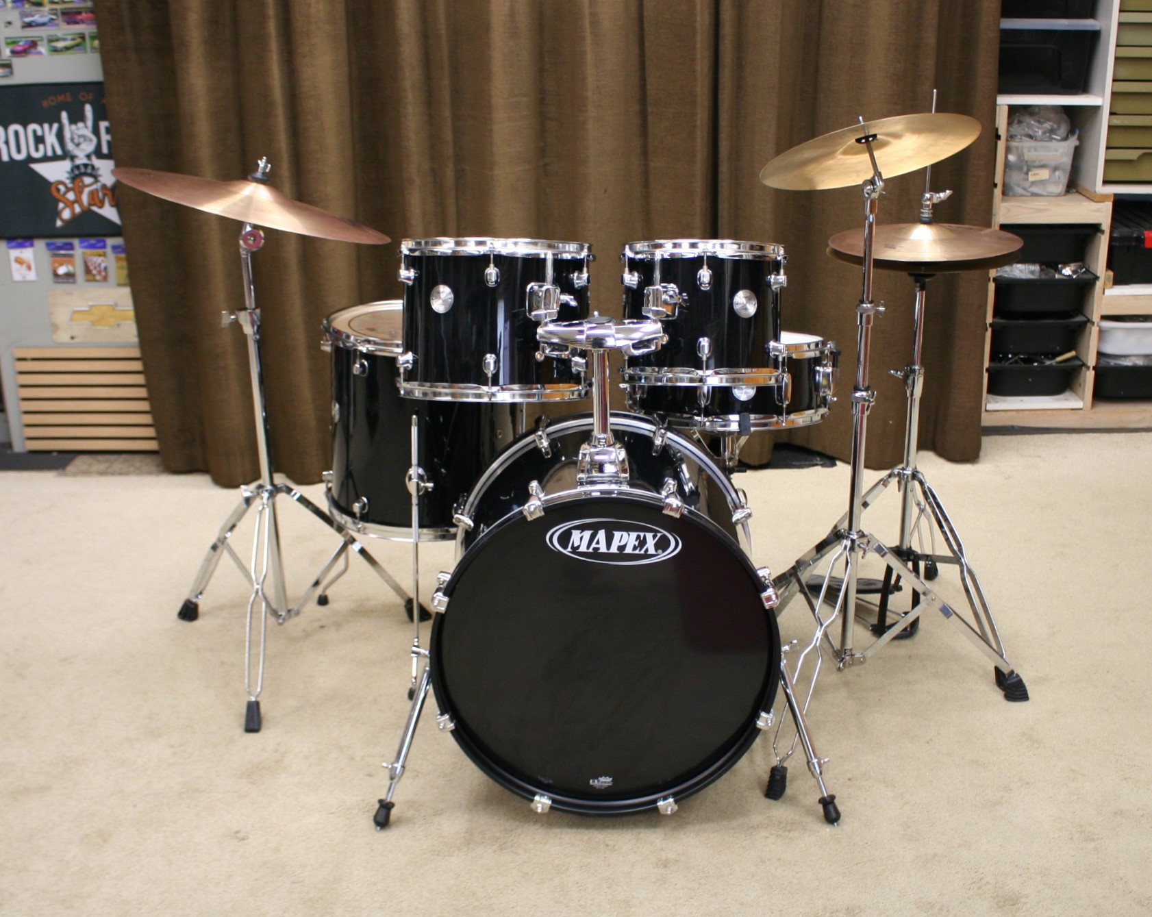 incl. bekkenset bestaande uit 14 inch hihat, 14 inch crash en 20 inch ride,