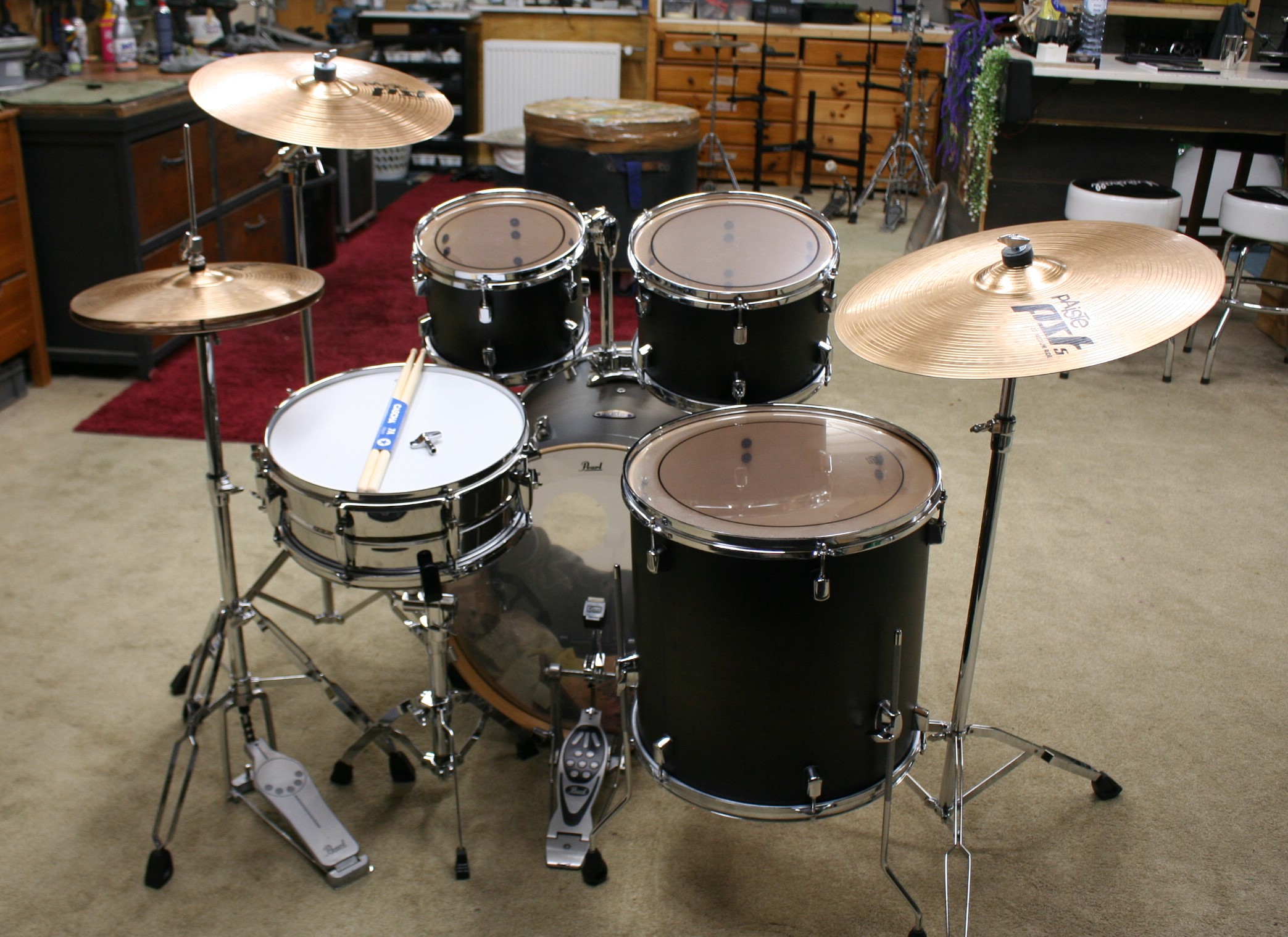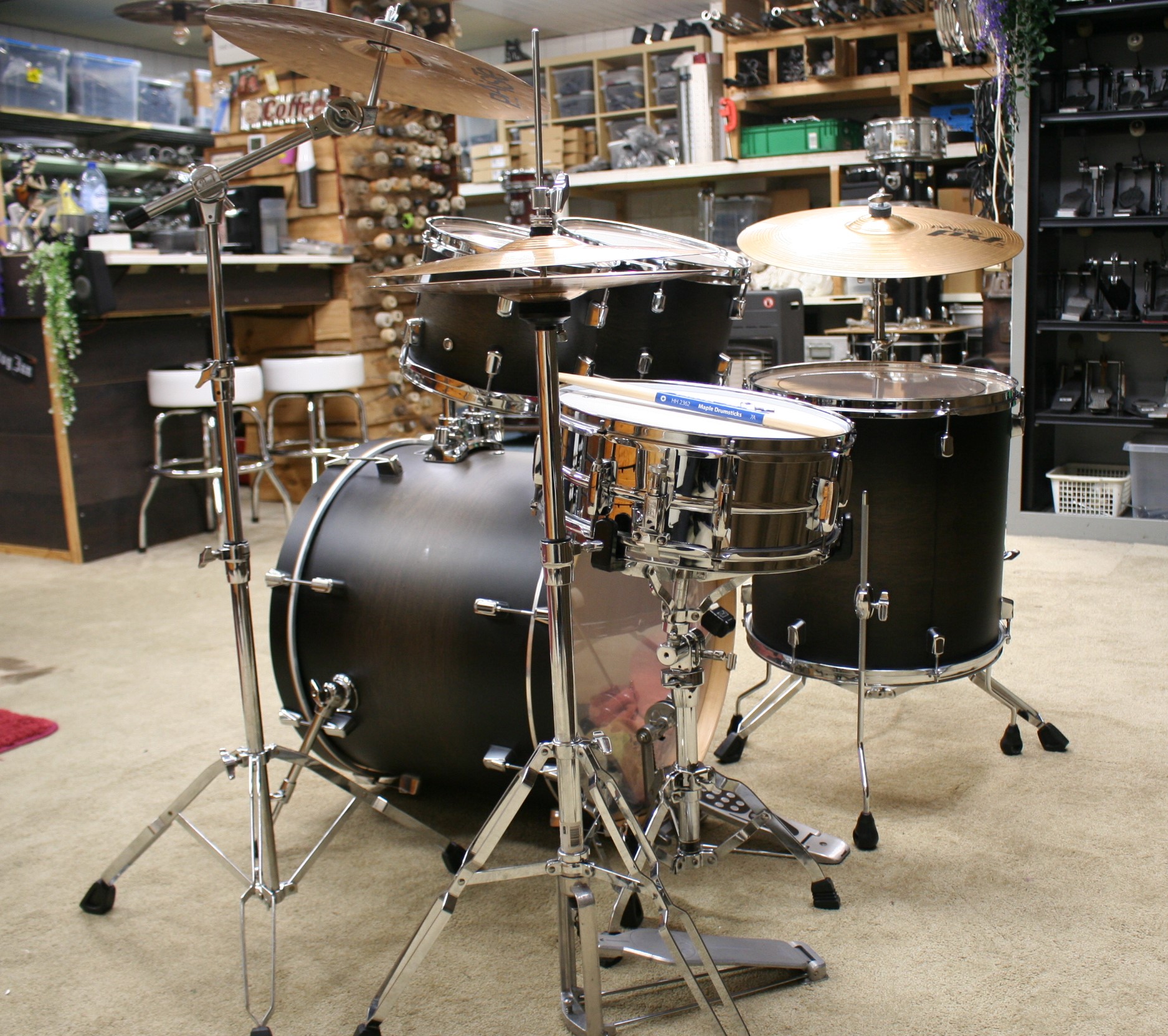 compleet gemaakt met een pearl maple chrome snare,