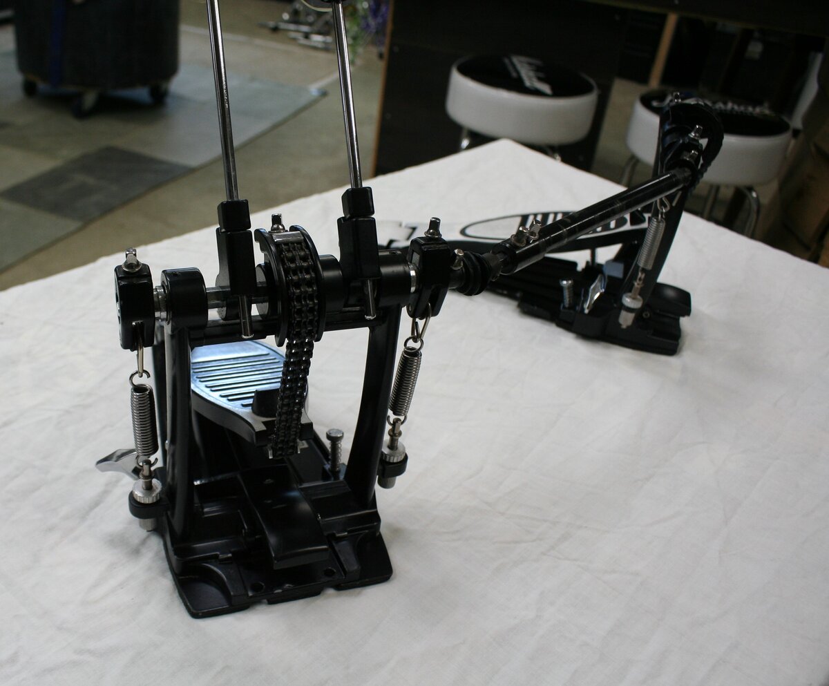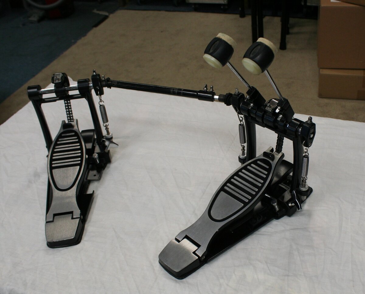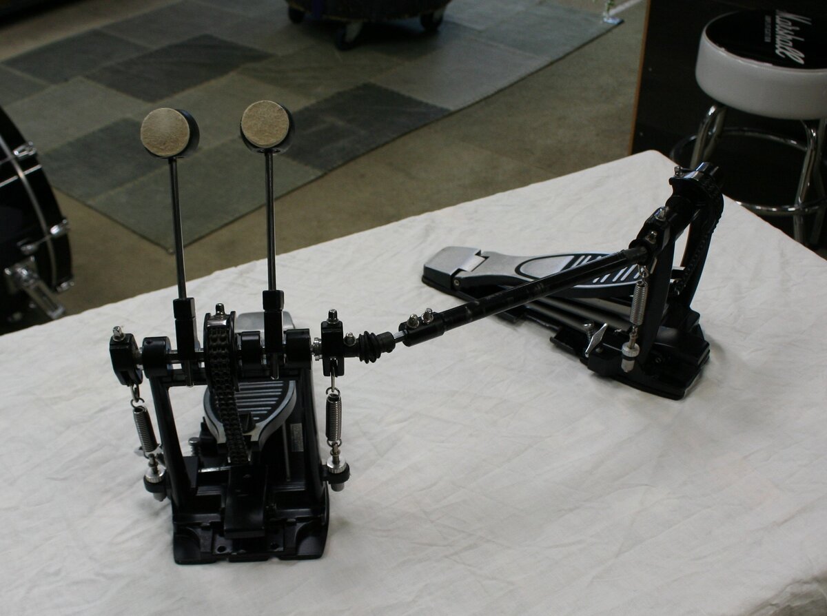 leuke dubbel base set voor de beginnende drummer of voor oefenruimte etc.