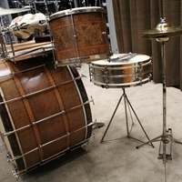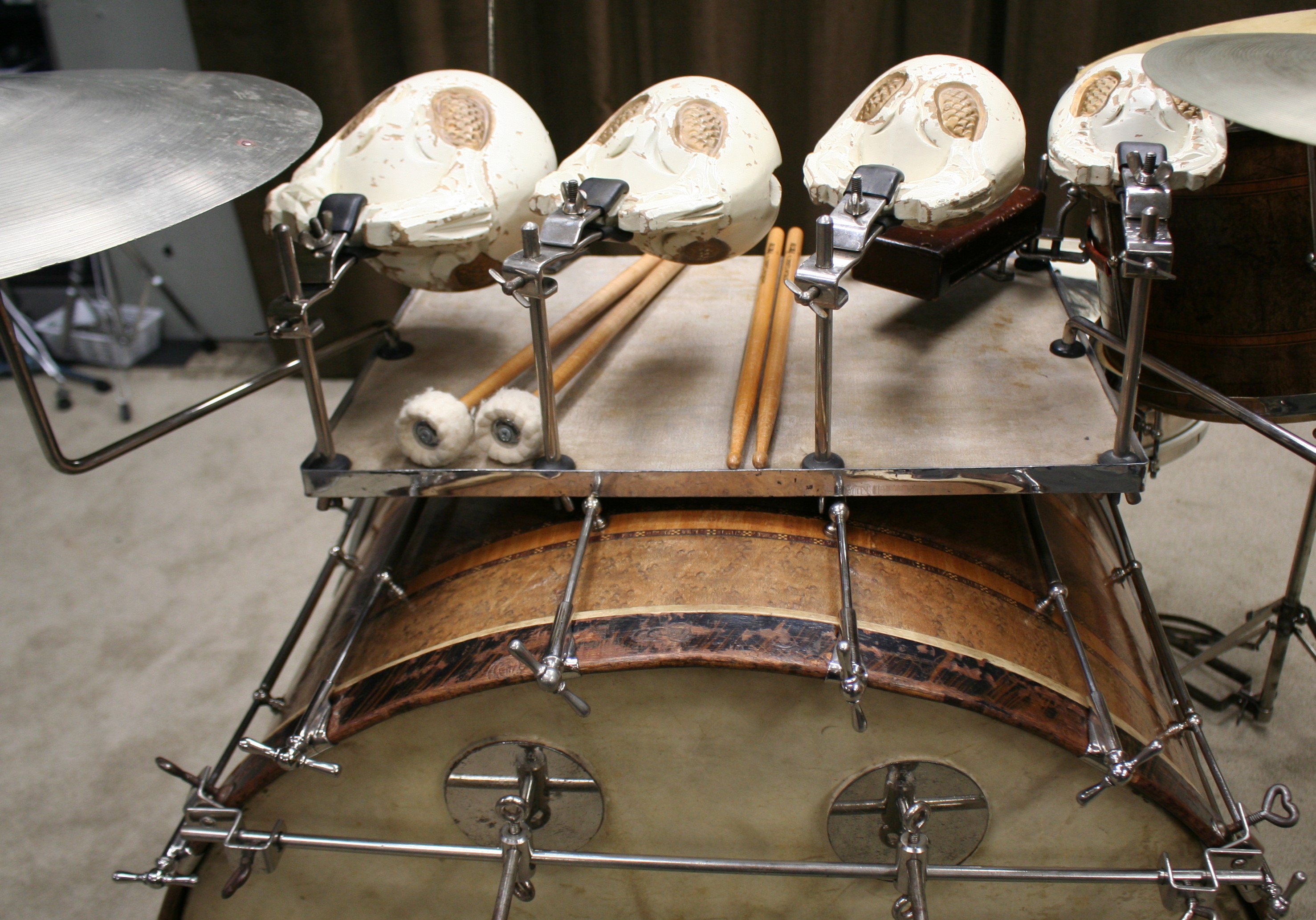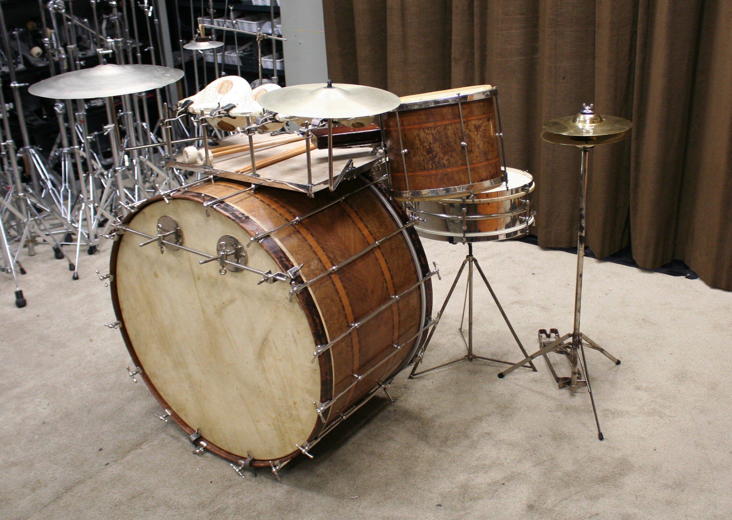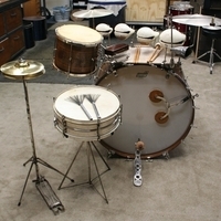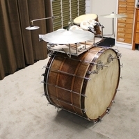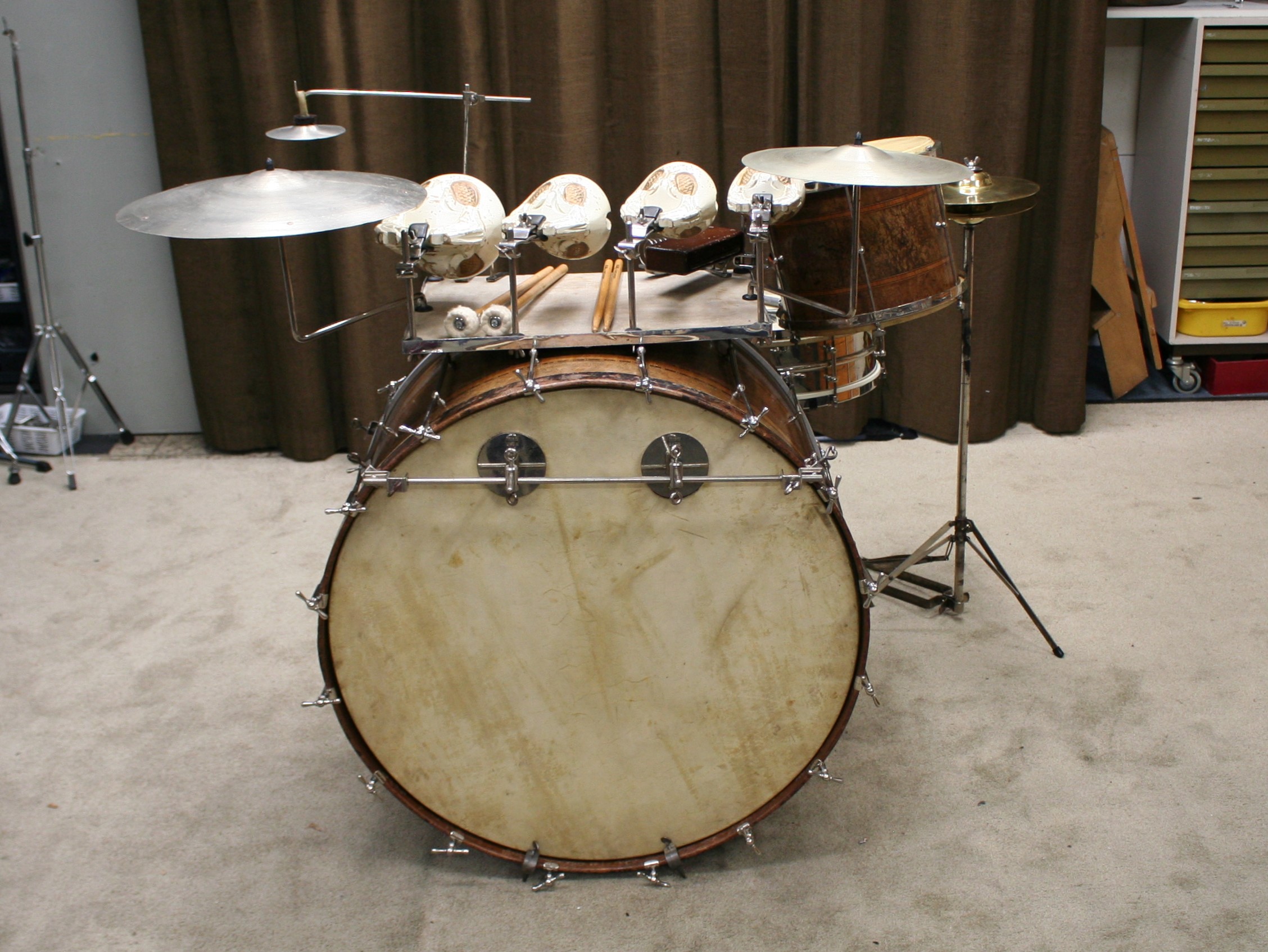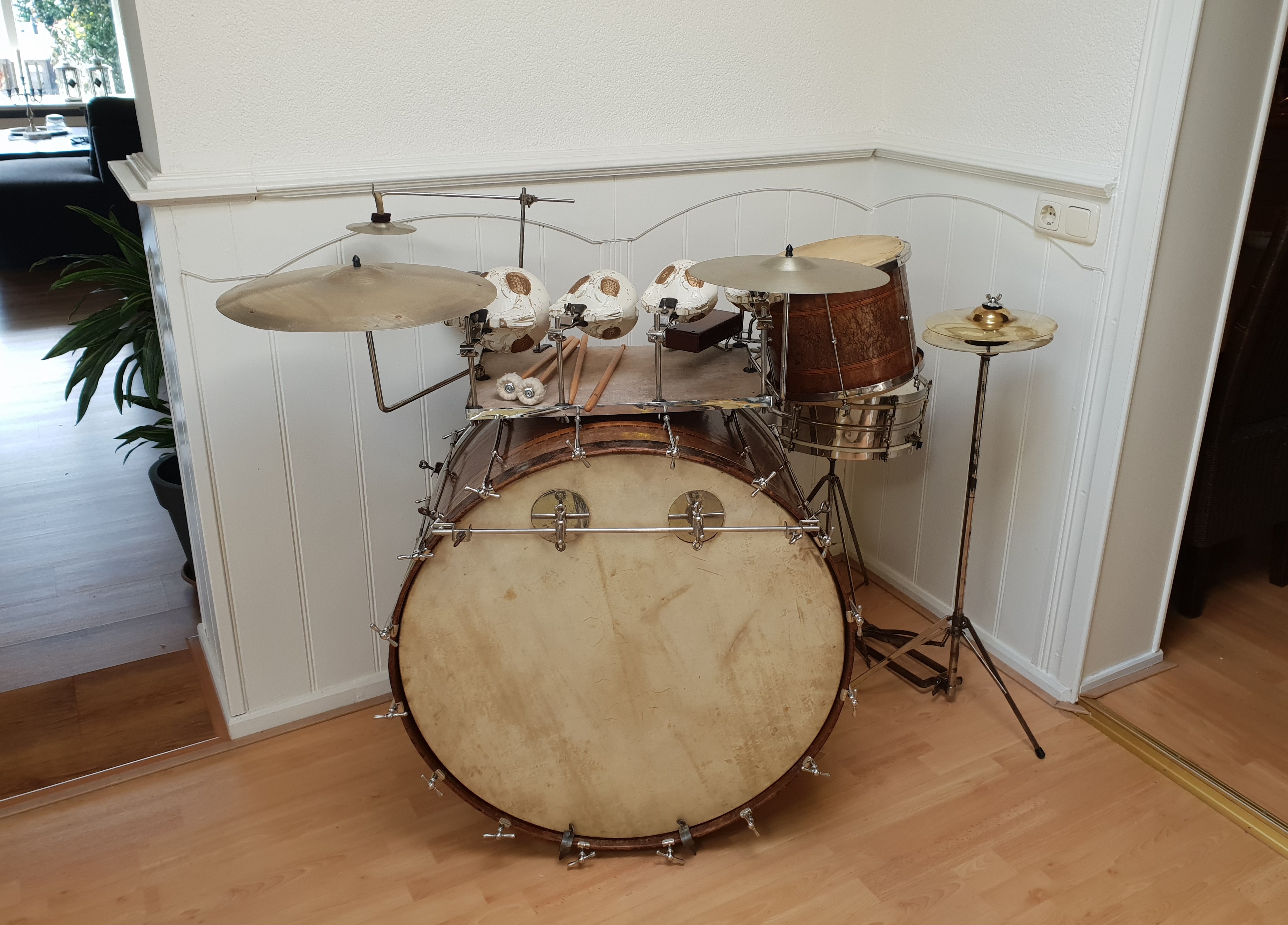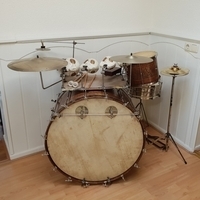 slagvel van de bass is vervangen door een ludwig paukvel zodat het geheel weer compleet bespeelbaar is,